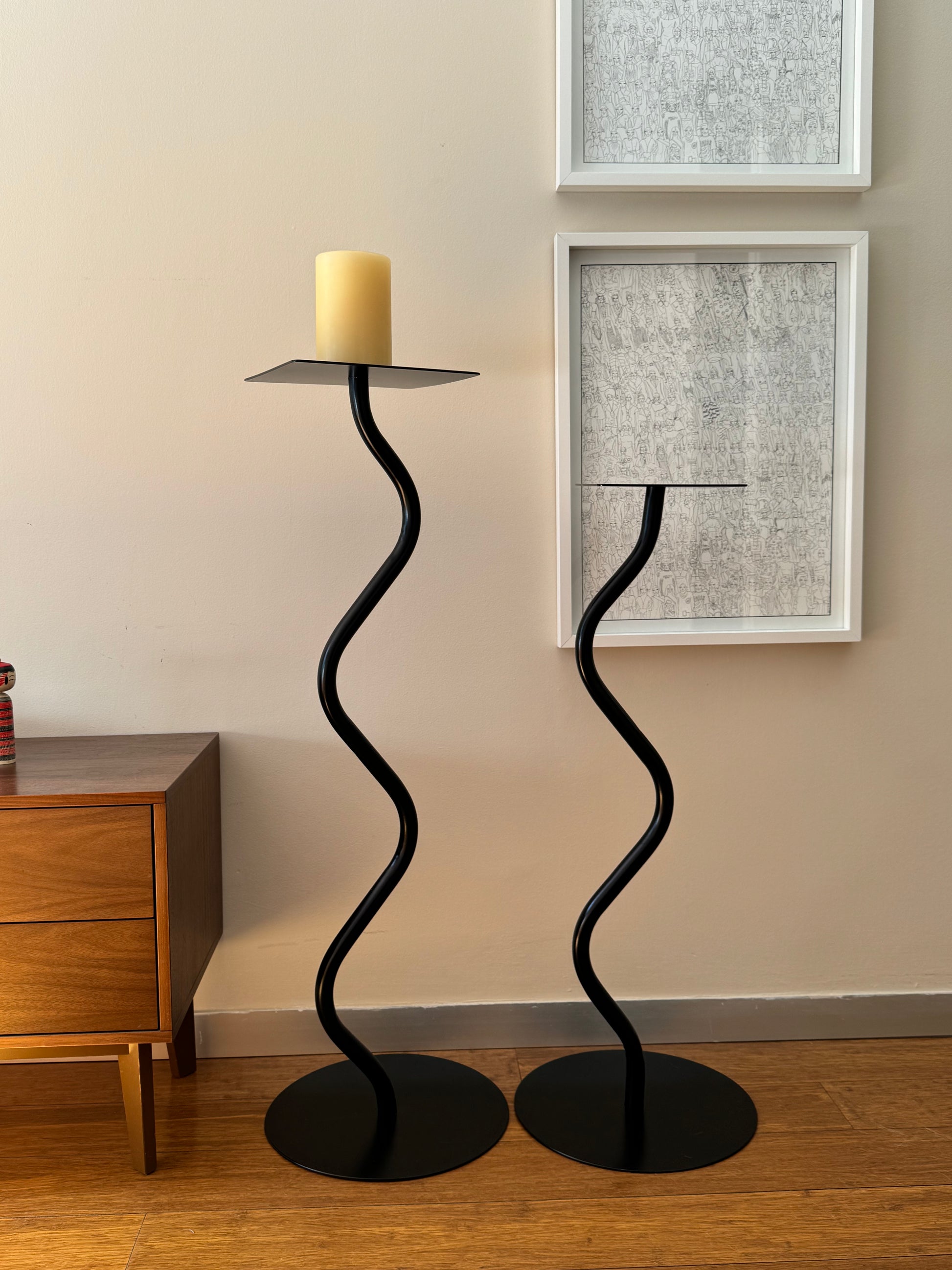 El set de portavelas de acero de Casa Luz es la pieza perfecta para transformar cualquier ambiente con un toque creativo y contemporáneo. Su diseño ondulado, elegante y minimalista aporta movimiento visual y una estética escultórica que resalta en salas, recámaras, entradas o espacios decorativos. Fabricados en acero resistente y acabados elegantes, estos portavelas modernos combinan funcionalidad y estilo, creando un punto focal único. Al venderse en par, generan una armonía visual que eleva la decoración de inmediato. Ideales para velas gruesas o como bases decorativas, son el complemento perfecto para quienes buscan diseño y presencia.